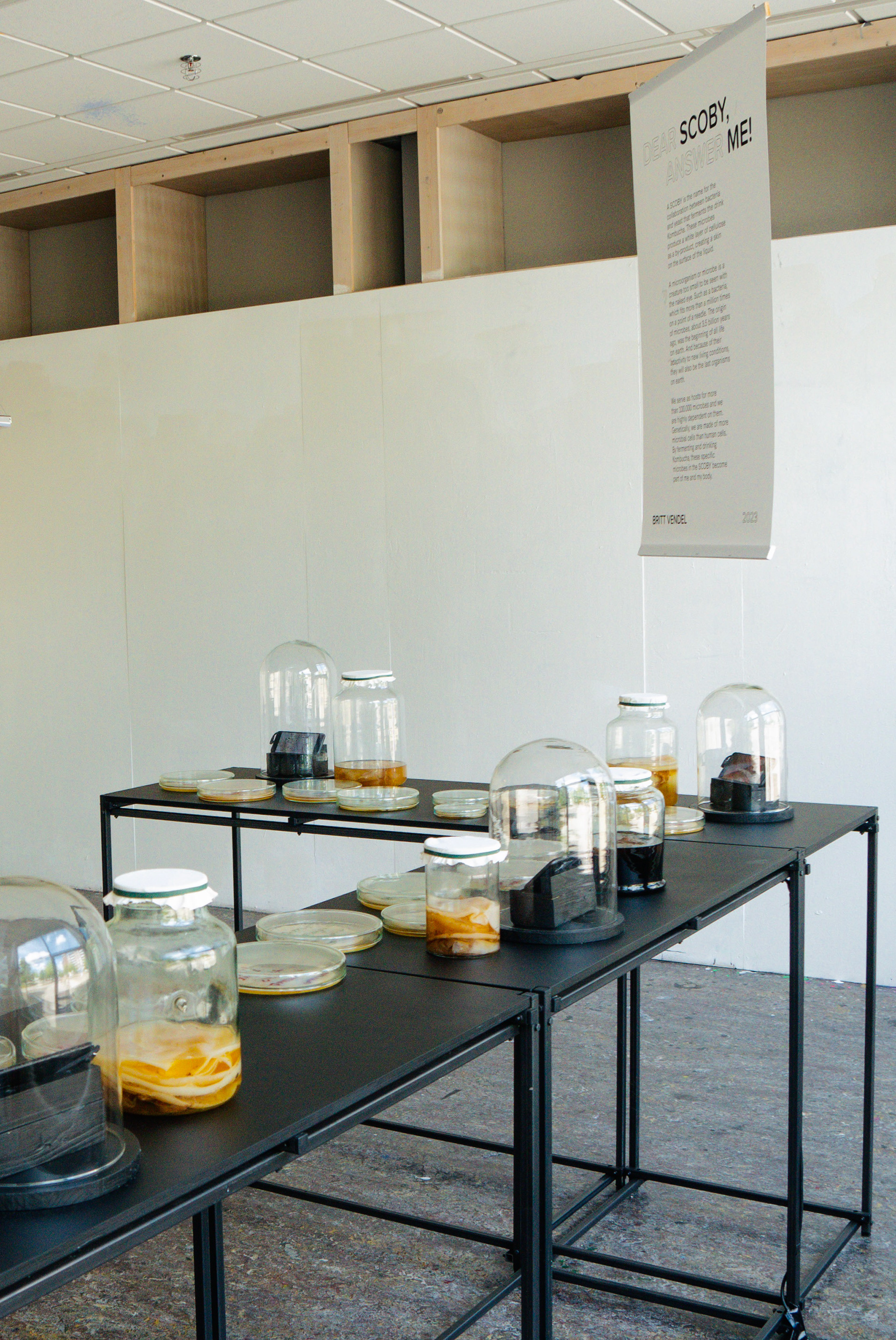 Kan er een symbiose ontstaan tussen de mens en de SCOBY om duurzaam materiaal te ontwikkelen die vervuilende materialen, zoals plastic of leer, kunnen vervangen?