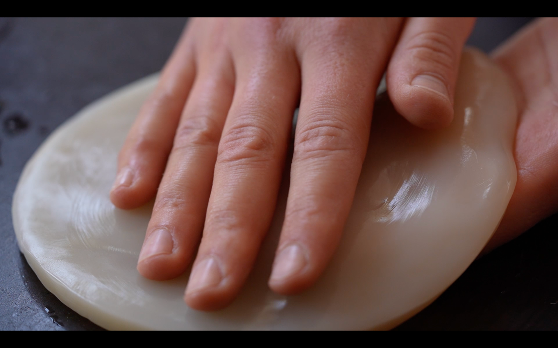 Is de SCOBY cellulose levend? Dat speelt voor mij een grote rol in het vormen van een mening over de ethiek van het toepassen van het materiaal. Volgens het Micropia Museum bestaat de SCOBY plak uit pure cellulose die geproduceerd wordt door de bacterie. Op en in die cellulose zitten nog een aantal microben. Maar het overgrote deel van de microben leeft in de Kombucha vloeistof. Voor het drogen van de SCOBY was je het met zeep. Daarbij zal dus het aantal microben die op de cellulose leven wel dood gaan, maar de grootste hoeveelheid microben, namelijk in de vloeistof, blijft leven en kan weer nieuwe cellulose produceren. De witte plak SCOBY is dus wel degelijk levend, maar de hoeveelheid levende microben is vergeleken met de vloeistof minder groot. (Micropia - Science Museum Amsterdam | bij ARTIS, n.d.)
